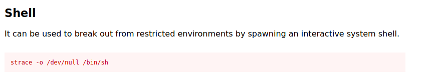 Head to GTFOBins https://gtfobins.github.io/gtfobins/strace/