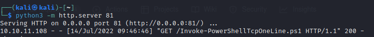 Let’s use a powershell script from nishang : https://github.com/samratashok/nishang/blob/master/Shells/Invoke-PowerShellTcpOneLine.ps1