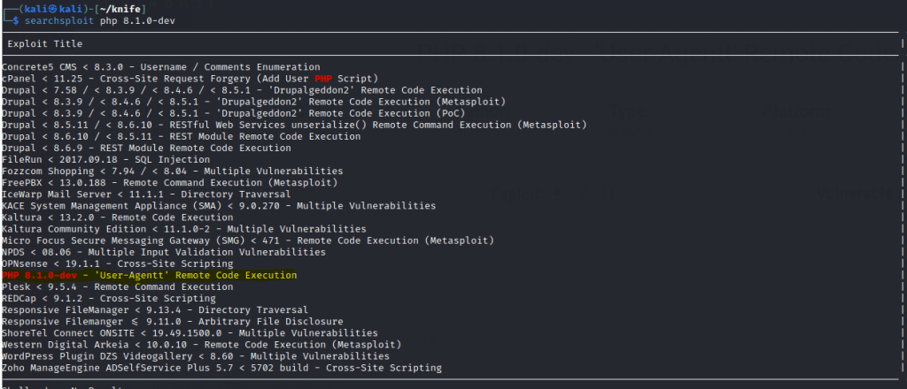 Using searchsploit with the PHP version we are able to get a RCE exploit.