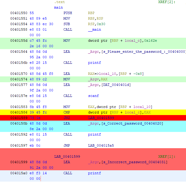 - 586 = comparison with EAX (user input) and local_c (password)