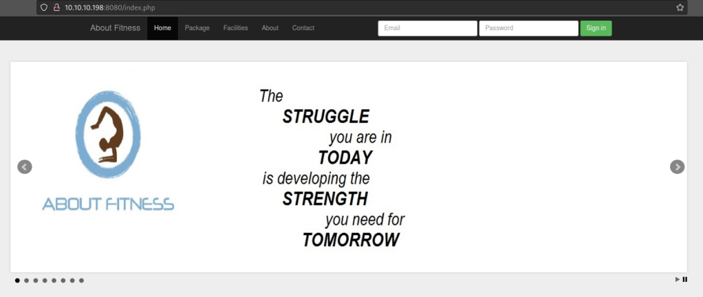 Webserver shows a fitness based company.