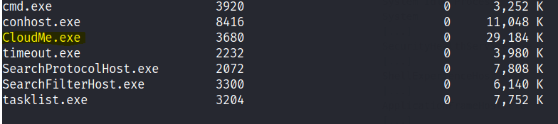 While exploring we notice the CloudMe file that is running on tasklist