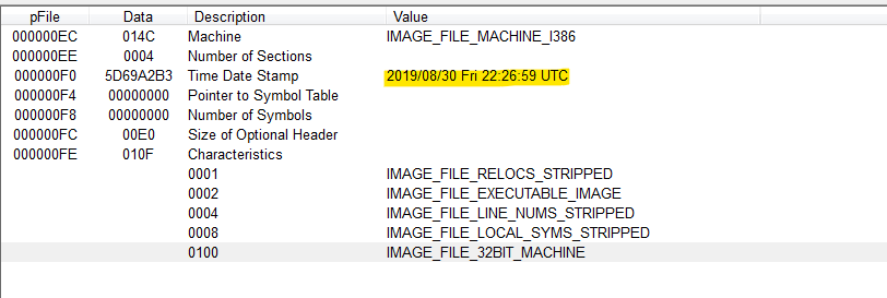 Head to action and save as binary file and open the file in PEview.