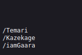 Each directory contains text data that tells the history of the character. The /iamGaara file is slightly diffrent form the others and after some observation a clue can be seen in the text.