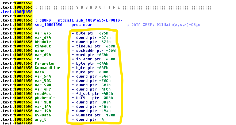 5.How many local variables has IDA Pro recognized for the subroutine at 0x10001656?