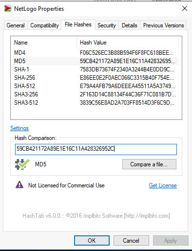 The MD5 Checksum of Netlogo.exe