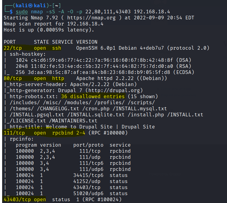 - Enumeration will lead to a vulnerable Drupal 7 server