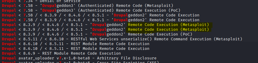 From the Nmap scan we know that Drupal is running version 7. Use searchsploit to find for exploits.