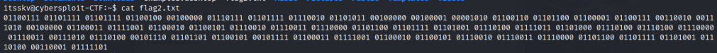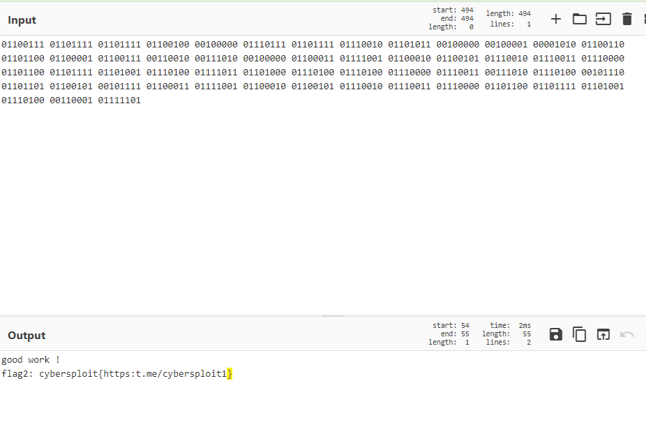 The 2nd flag is contains a binary code , decrypt it to get the 2nd flag.