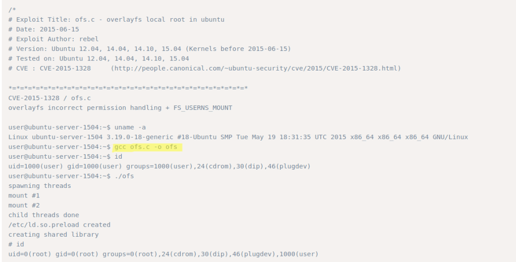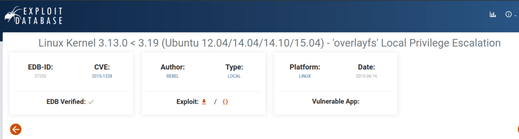 - Find the exploit Linux Kernel 3.13.0 < 3.19 (Ubuntu 12.04/14.04/14.10/15.04) – ‘overlayfs’ Local Privilege Escalation