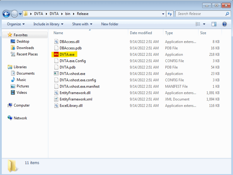 - PATH begins with < where the DVTA/bin/release folder is located in the machine>
