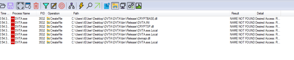 We can see couple of DLLs that were used but not found during the execution of the application.