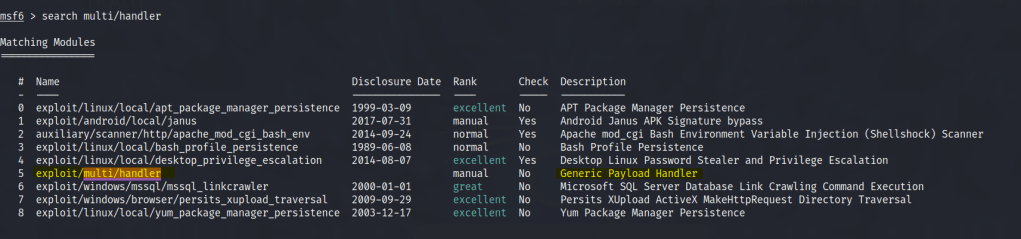 Let’s set up a listener with msfconsole and use the multi handler exploit.