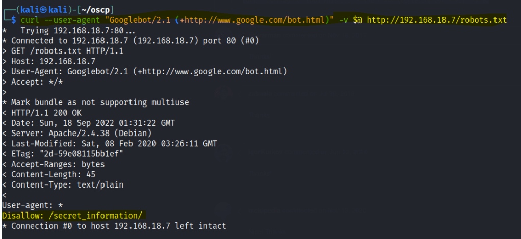 - Driectory enumeration indicates robots.txt can be seen with a regular user-agent