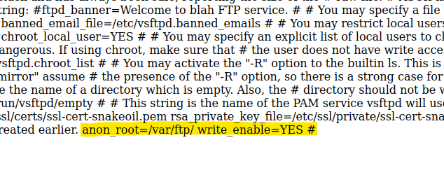 Since we know the FTP runs vsftpd, let’s search for a config file.