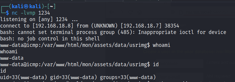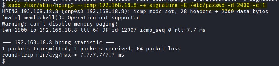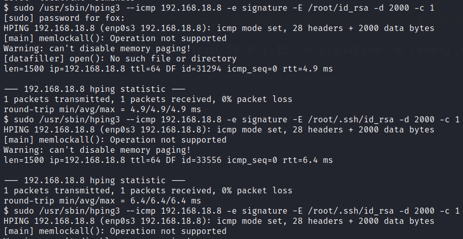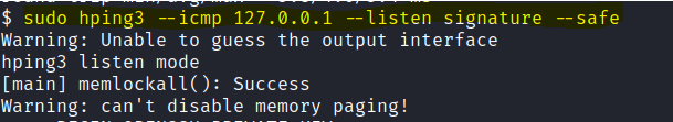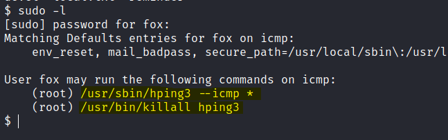 Now i’ll use hping3 inside the machine instead. Open up another fox user. In one of the shell start a listener.
