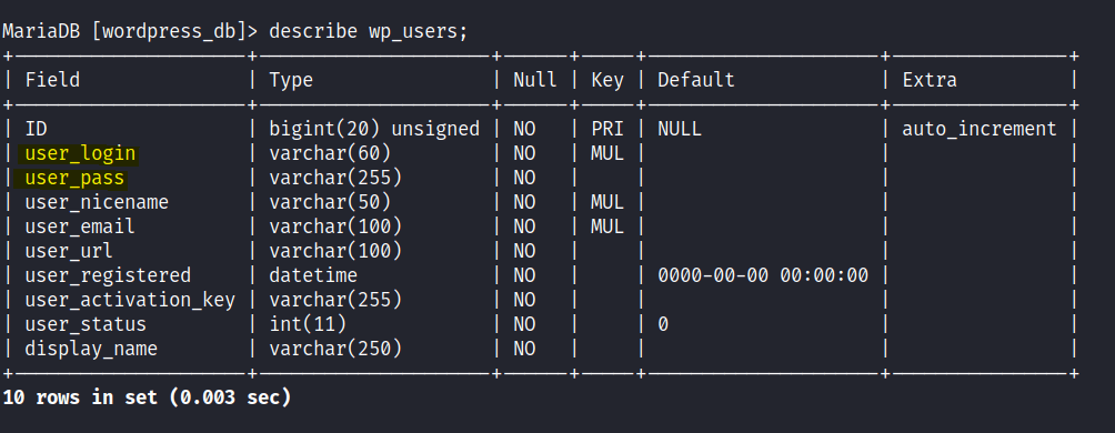 - Bruteforce MYSQL server to find WP user details