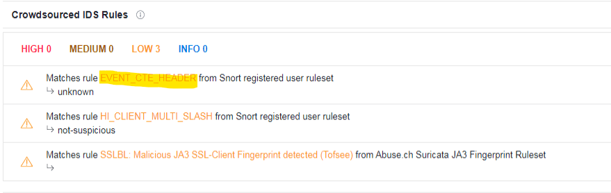 If there was a snort IDS in the environment at the time of the incident, which rules would it match?