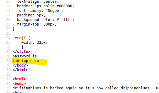 Source code shows a password.