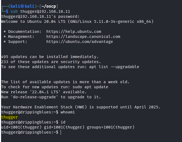 Able to gain access into the thugger user.