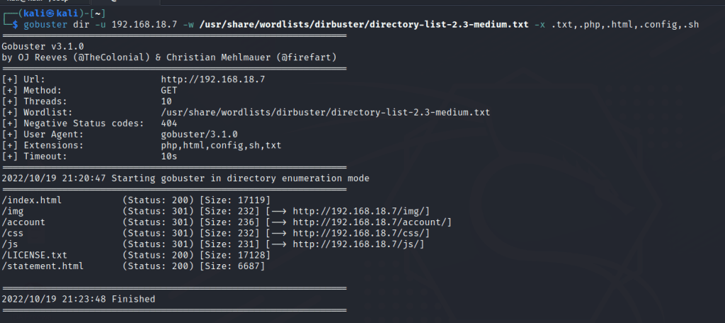 Let’s also enumerate the http server with gobuster scan to find for hidden directories.
