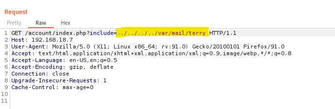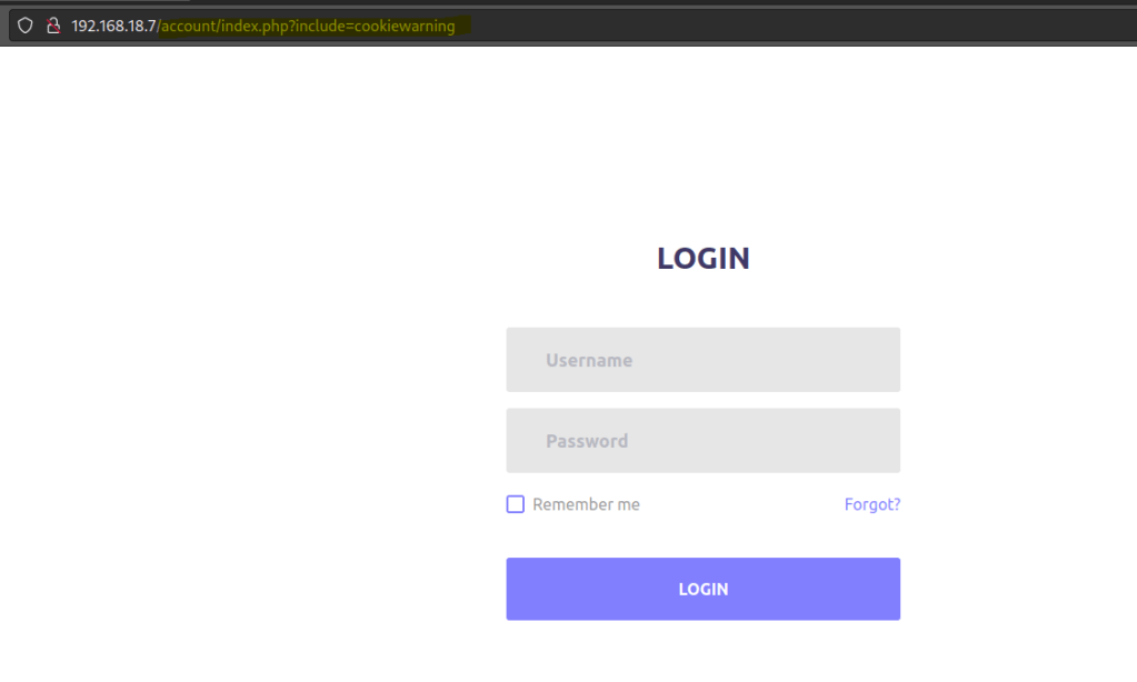 /account leads use to a login page. If we look at the URL bar we clearly have an option for LFI injection.