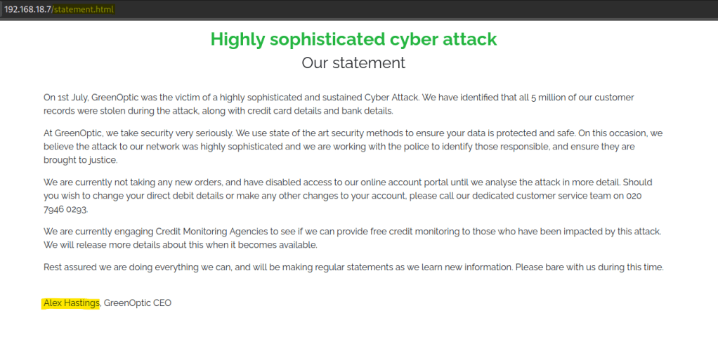 Looks like the company experience a cyber attack and we have a potential user name as in the CEO.