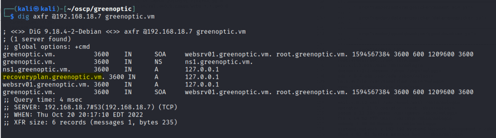 Since we have a DNS port open let’s use dig to find if there are any other domains avalible.