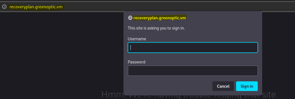 Looks like we get a recoveryplan domain. Add the domain to /etc/hosts and head to the page.