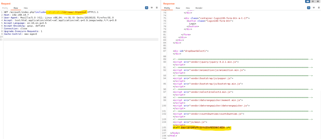 We need to find some credentials for both login pages. Let’s check if we can find .htpasswd