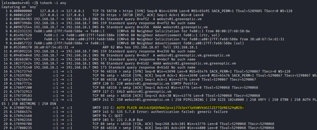 We can use the terminal version of wireshark to capture some packets. I’m going to use the any interface to caputre all packets.