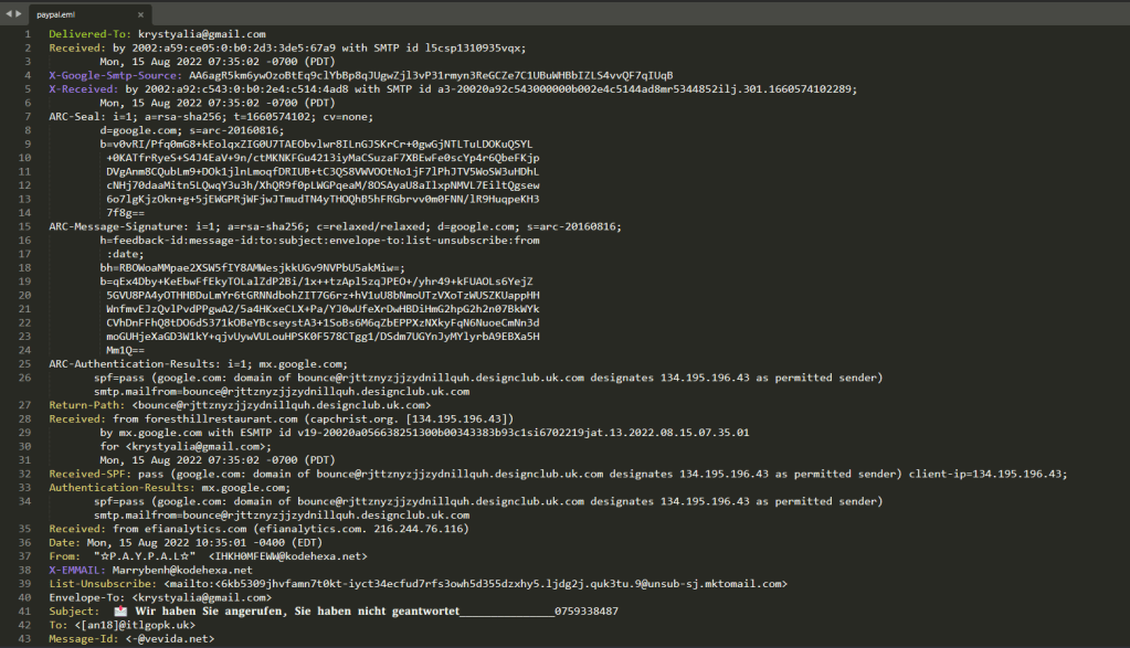 Your email address has been leaked and you receive an email from Paypal in German. Try to analyze the suspicious email.