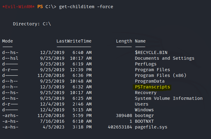 After some enumeration I decided to use Get-childitem -Force to find for hidden directories.