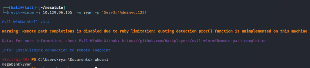 A PowerShell transcript is found and the user Ryan and password can be seen in the text file.