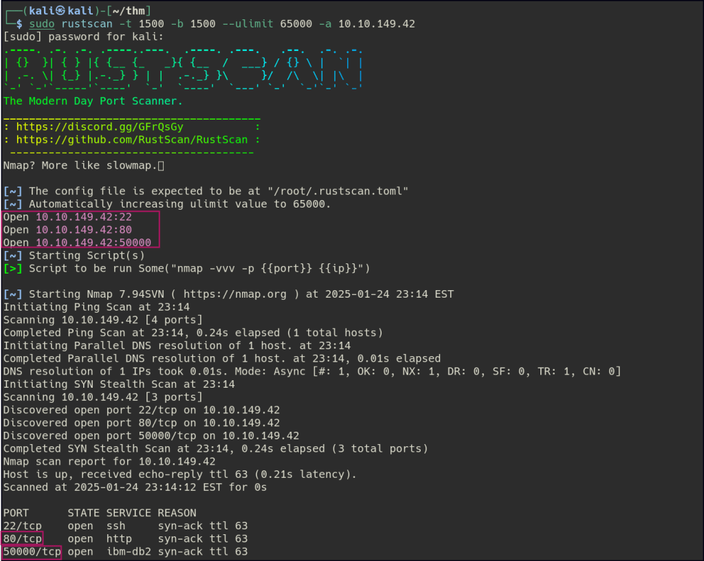 Start a nmap scan to dig into the open ports and add the necessary flags for in depth enumeration.