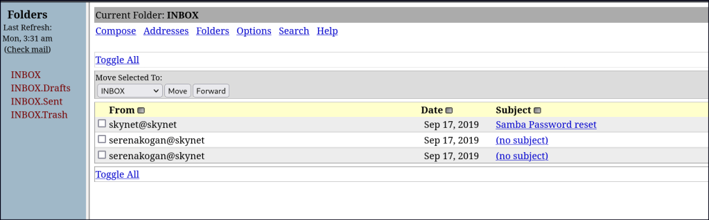 Unable to gain access to SMB using the password list. However, the same password was successfully matched and used to log in through the SquirrelMail web portal.