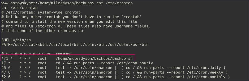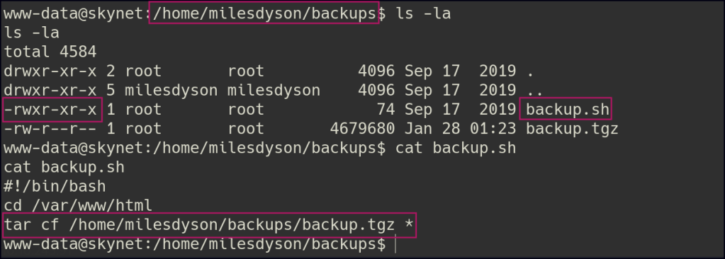 Enumerate the folders and there is a backup.sh script that uses the tar utility to archive the html folder and is running as a cron job.