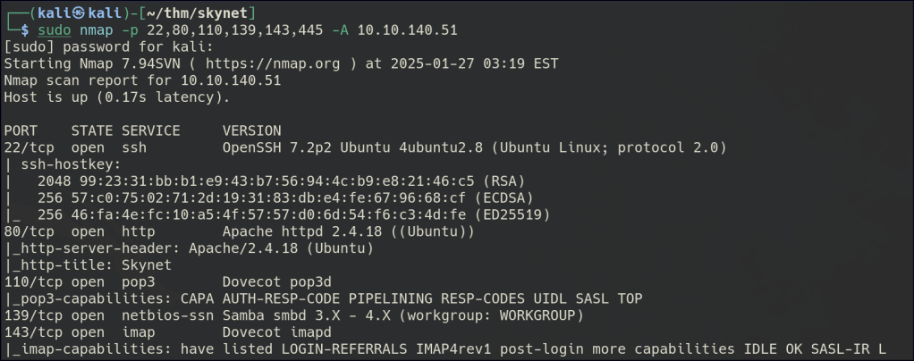 Start a nmap scan to dig into the open ports and add the necessary flags for in depth enumeration.